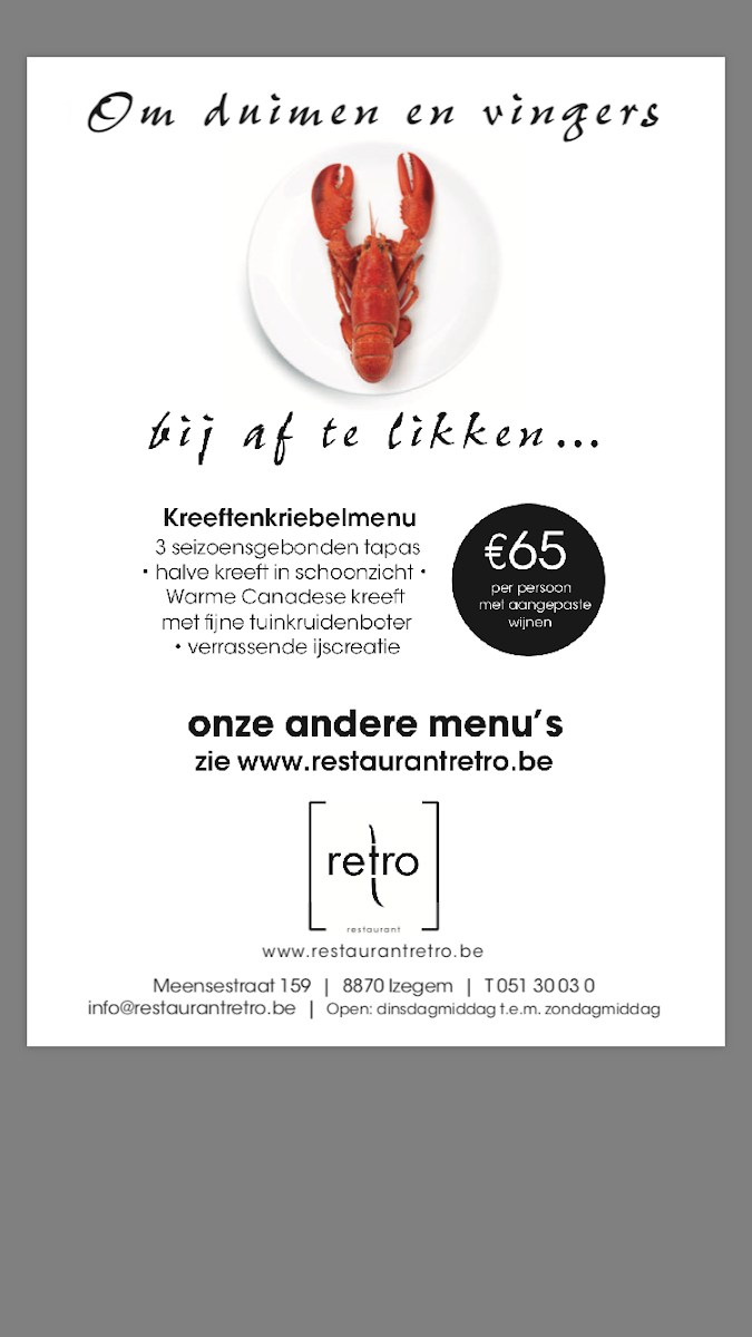 The menu at Restaurant Retro offers a delightful mix of classic and contemporary dishes, perfect for those seeking a memorable dining experience in Izegem. One of the standout options is the Vittelo Tonnato, a deliciously tender veal dish served with a creamy tuna sauce that strikes a perfect balance between richness and freshness. For those with a craving for seafood, the menu presents a range of options, including a perfectly grilled fish of the day, which is always a crowd favorite. Meat lovers will appreciate the hearty cuts of steak, which are consistently cooked to perfection. Vegetarian options are also thoughtfully included, with a variety of fresh salads and creative vegetable dishes that cater to different tastes. The dessert selection is equally enticing, with decadent offerings like rich chocolate mousse and light fruit tarts rounding off the meal. With its well-curated menu, Restaurant Retro delivers not only comfort food but also exciting flavors that leave a lasting impression.